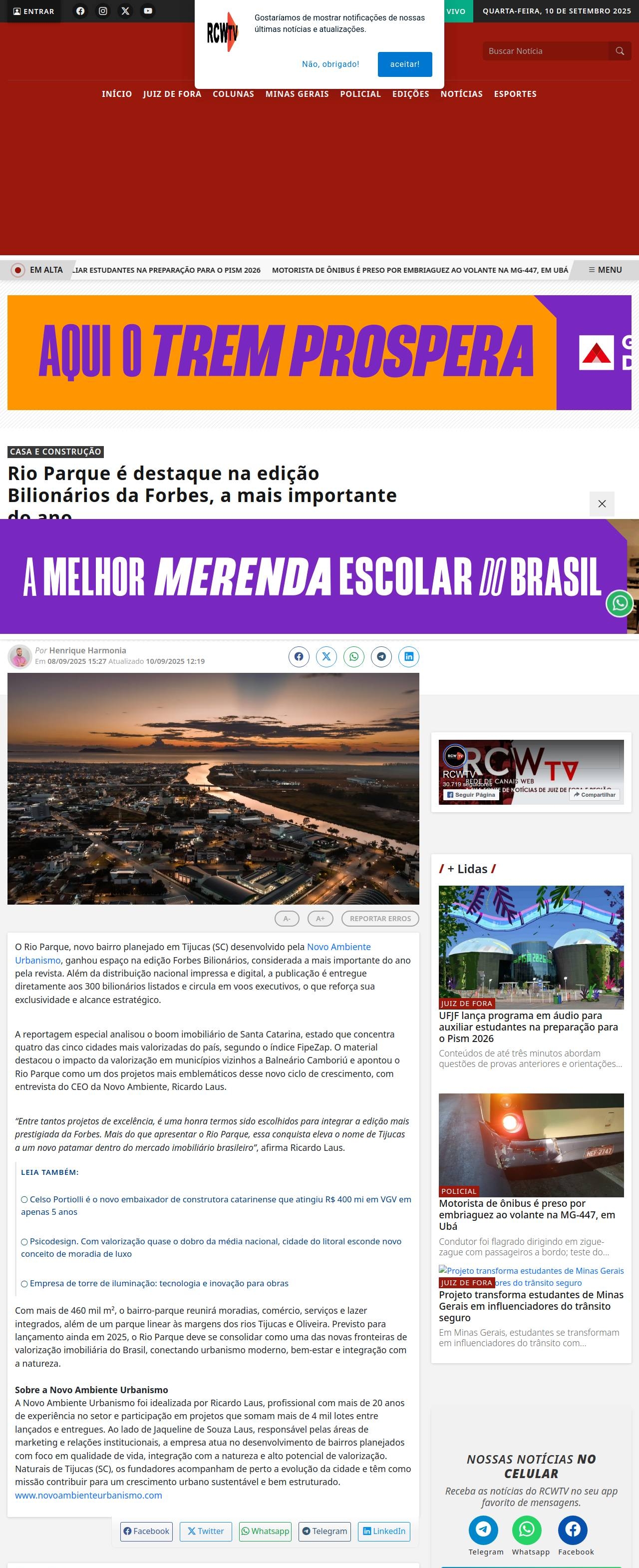 Rio Parque é destaque na edição Bilionários da Forbes, a mais importante do ano - RCWTV
